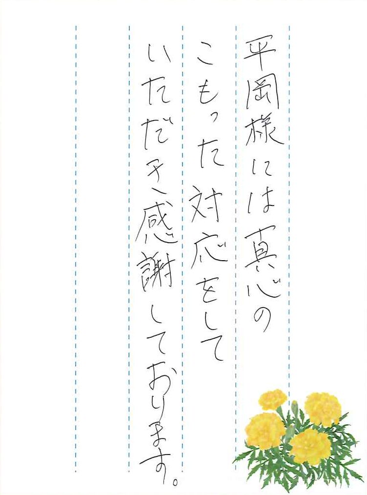 平岡様には真心のこもった対応をしていただき、感謝しております。