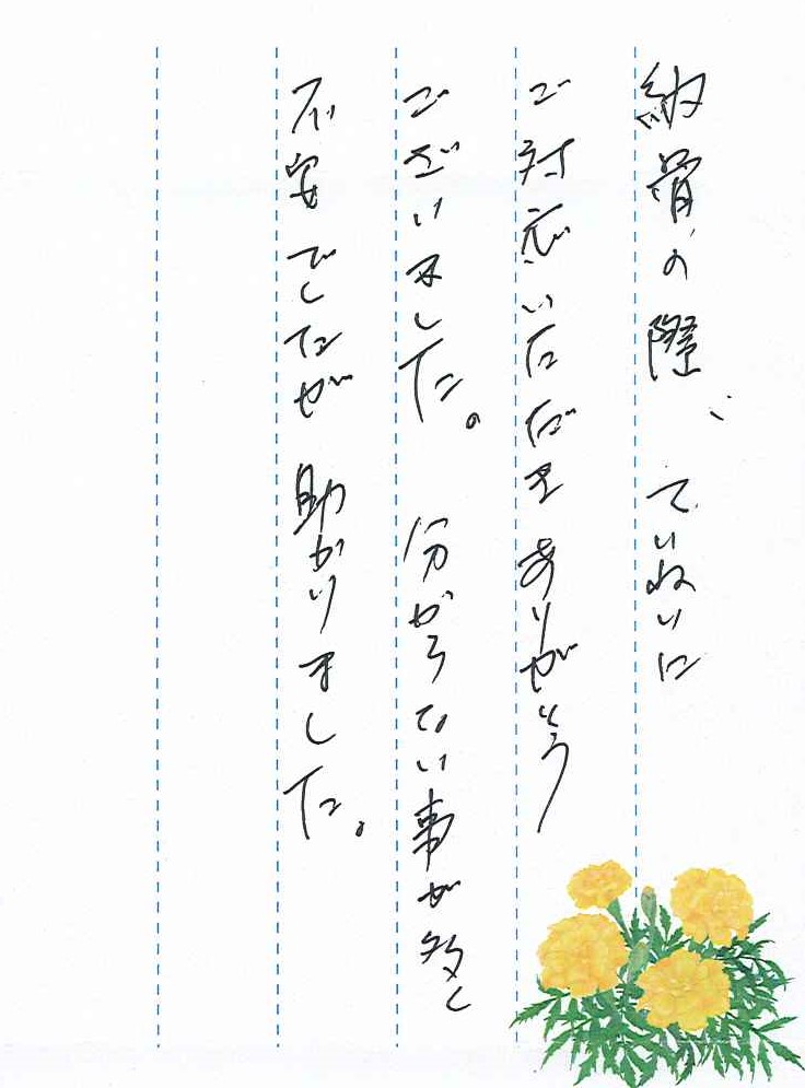 納骨の際、ていねいにご対応いただきありがとうございました。