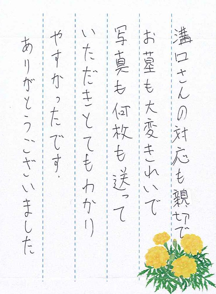 溝口さんの対応も親切で、お墓も大変きれいで、写真も何枚も送って