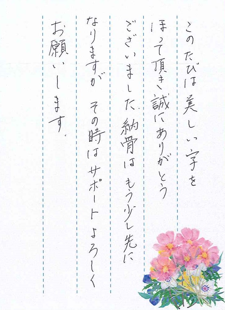 納骨はもう少し先になりますが、その時はサポートよろしくお願いします。
