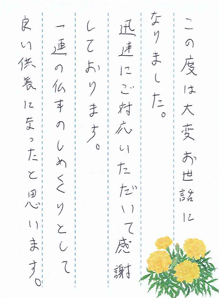 一連の仏事のしめくくりとして良い供養になったと思います。