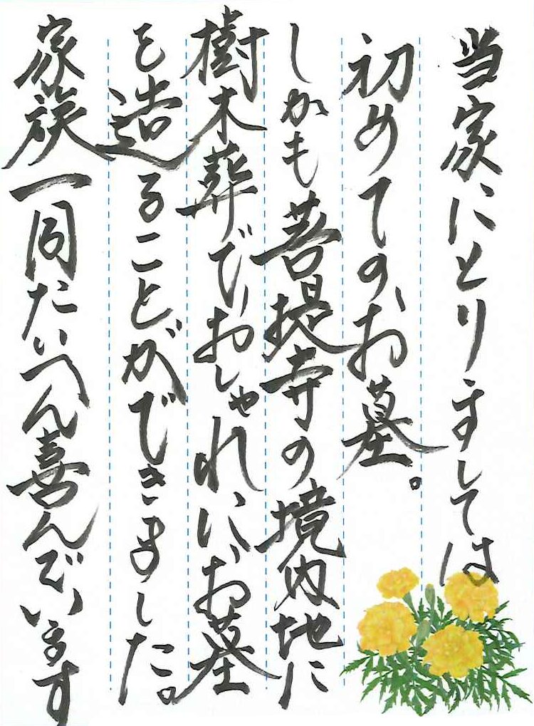 しかも菩提寺の境内内に樹木葬でおしゃれにお墓を造ることができました。